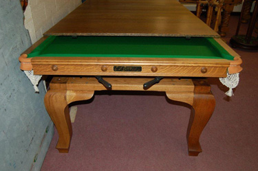 ![]() Fully restored E.J.Riley 8ft x 4ft solid oak combination snooker/ pool dining table circa 1910. Contact us for more details: Either Telephone (01724) 852 359 or Click Here to email us. |